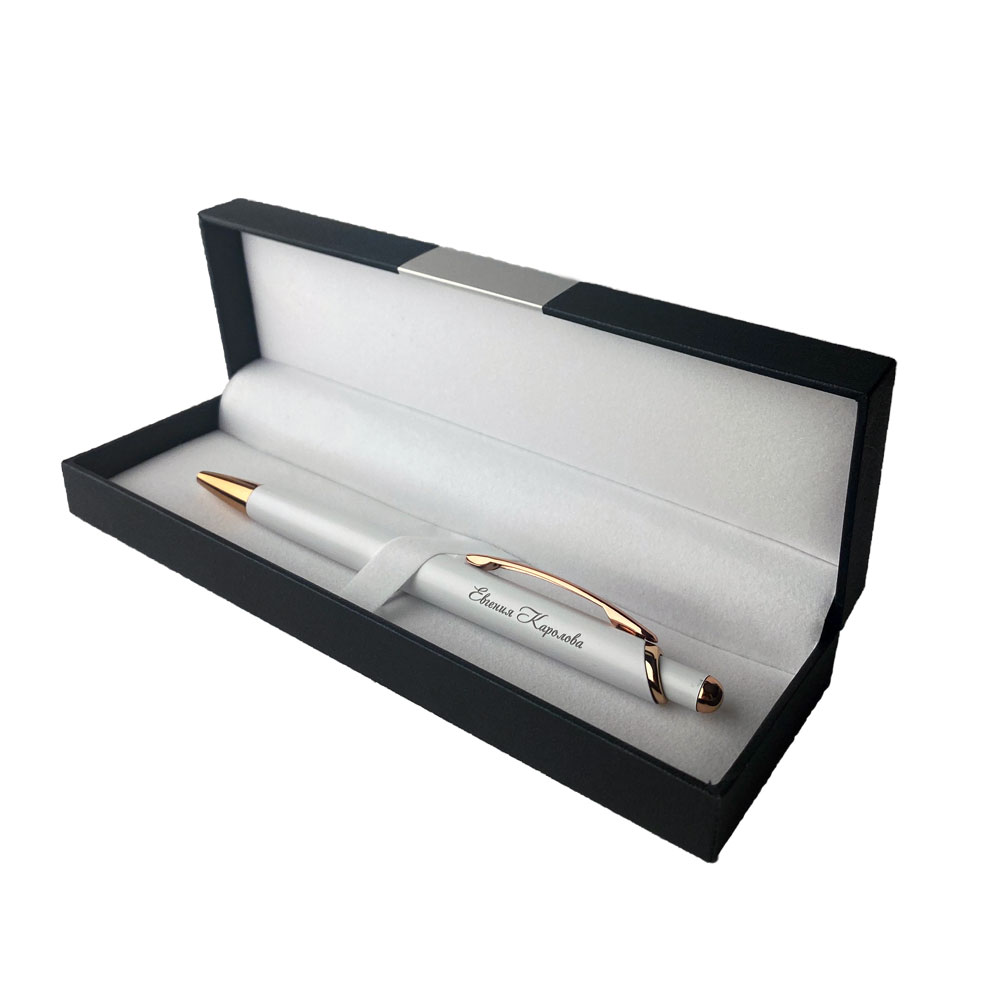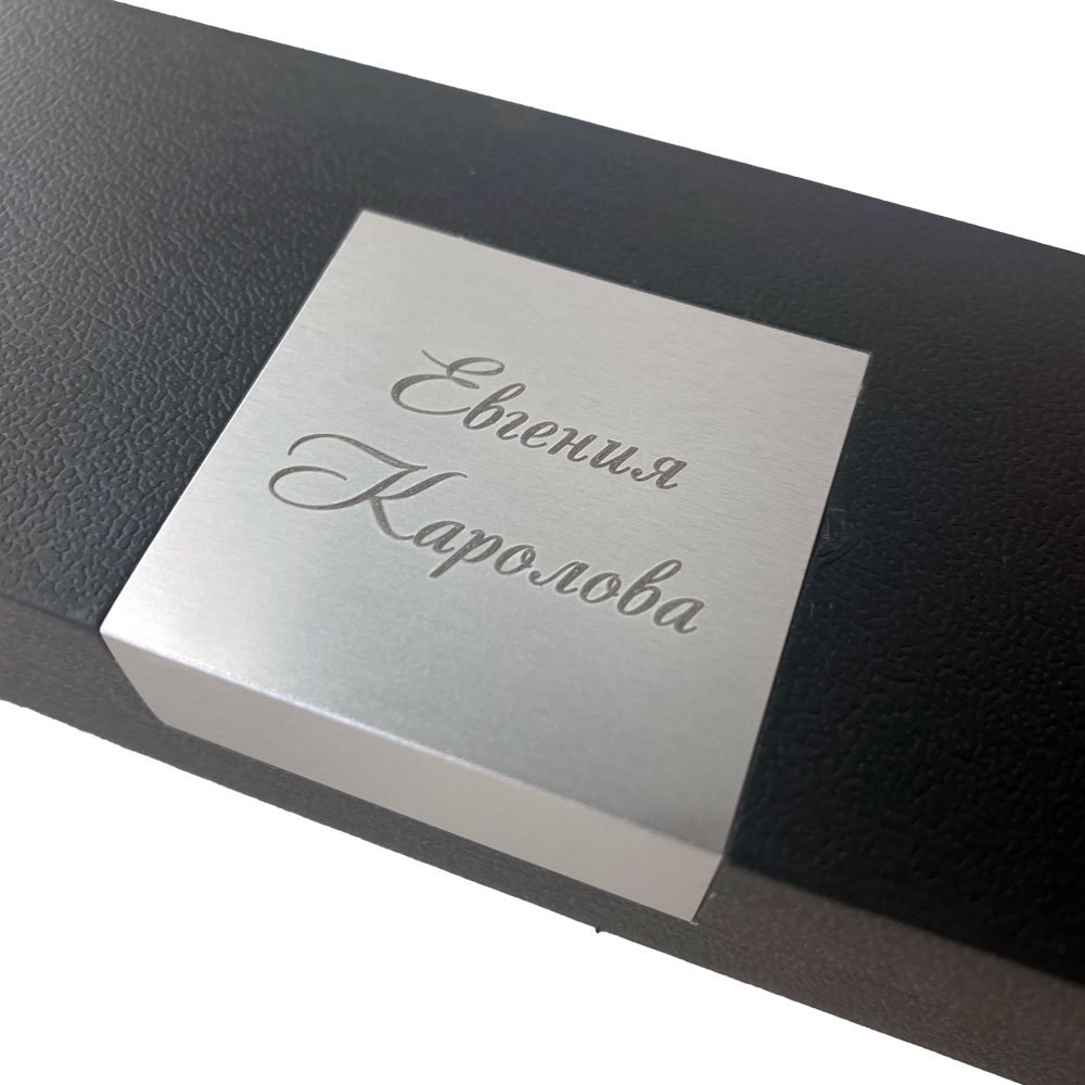 Луксозна кутия за химикалка с метална плочка за гравиране, която е идеалният избор за стилно и персонално представяне на вашия подарък химикал.