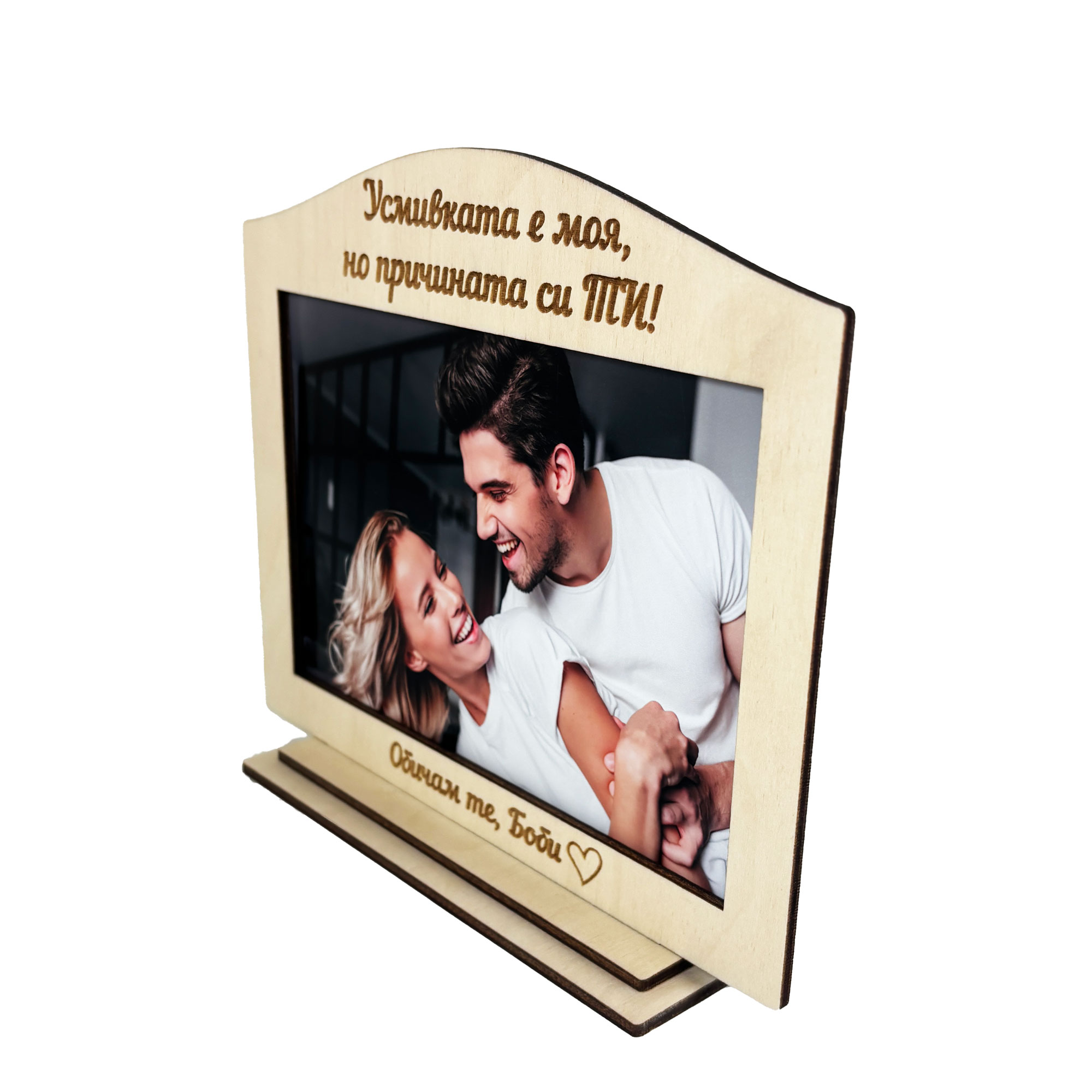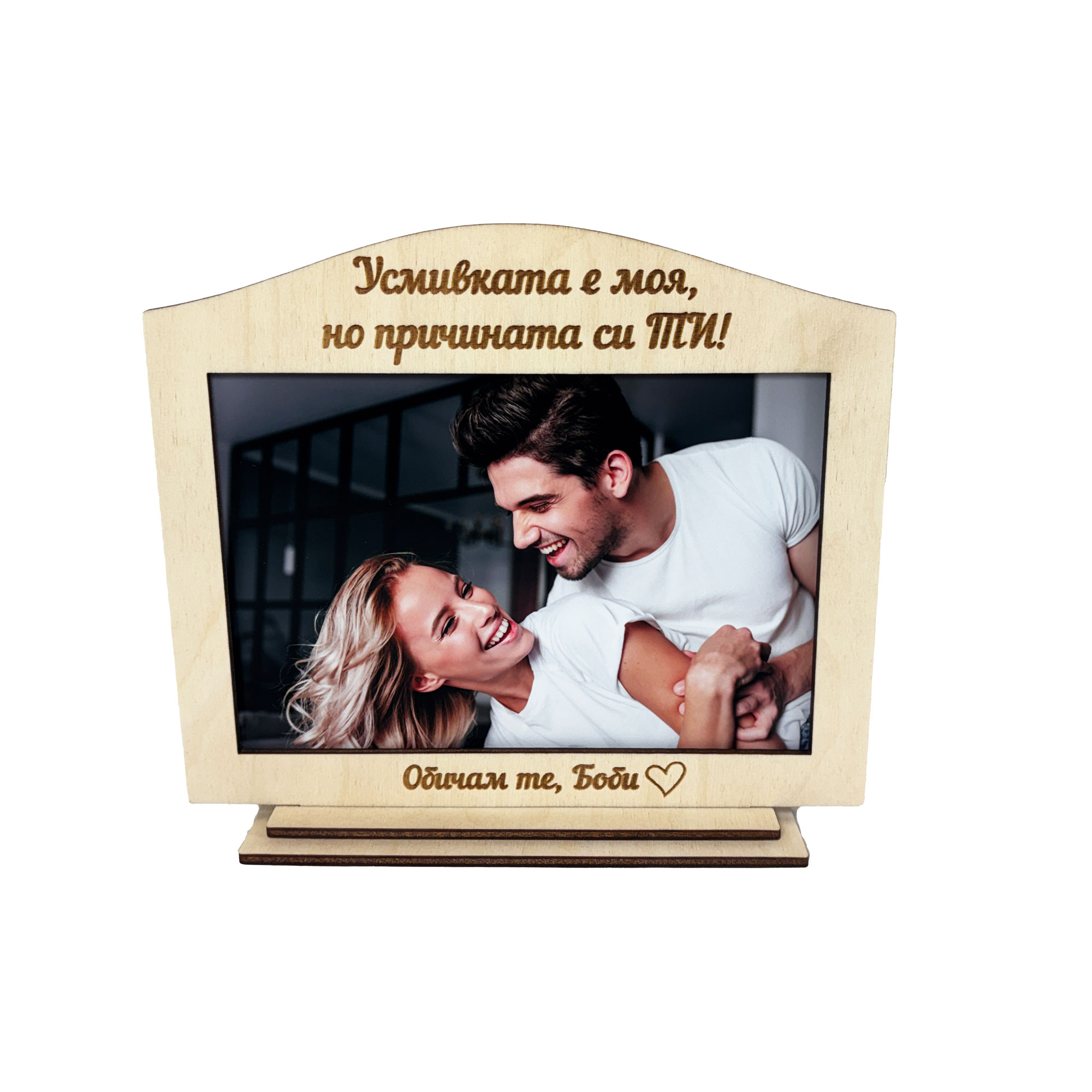 Стилна дървена рамка, създадена да съхрани най-ценните ви моменти. Подходящ подарък за любим човек, Свети Валентин, годишнина или просто като мил жест „без повод“.