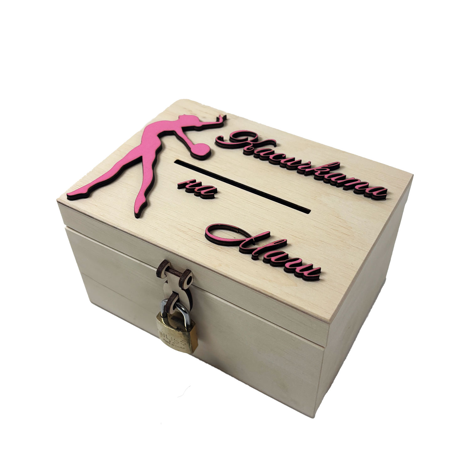 Дървената касичка „Гимнастичка“ е създадена за момичета, които обичат художествената гимнастика и се вдъхновяват от грациозното движение. Комбинацията от красив силует, нежни цветове и име я превръща в стилен подарък и специален спомен.